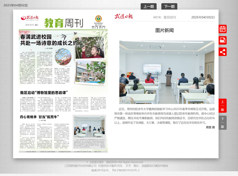 學雷鋒、做志愿、服務改革建新功——我校開展學雷鋒志愿服務月活動2025-04-07為深入貫徹落實習近平總書記關(guān)于弘揚雷鋒精神的重要論述,深刻把握雷鋒精神的時代內(nèi)涵,引領(lǐng)常紡青年在志愿服務實踐中大力弘揚“奉獻、友愛、互助、進步”的志愿服務精神,今年3月,以“學雷鋒、做志愿、服務改革建新功”為主題,系統(tǒng)部署開展2025年“學雷鋒”志愿活動月專項活動。通過組織全校師生開展30余場主題鮮明、形...省委第十巡視組巡視常州紡織服裝職業(yè)技術(shù)學院黨委工作動員會召開2025-04-04根據(jù)省委關(guān)于巡視工作的統(tǒng)一部署,2025年4月2日,省委第十巡視組巡視常州紡織服裝職業(yè)技術(shù)學院黨委工作動員會召開。省委第十巡視組組長李圣華作了動員講話,對深入學習貫徹習近平總書記關(guān)于巡視工作的重要論述、關(guān)于教育的重要論述和對江蘇工作的重要講話精神,認真貫徹落實全省巡視巡察工作會議暨對村巡察工作推進會、省委...